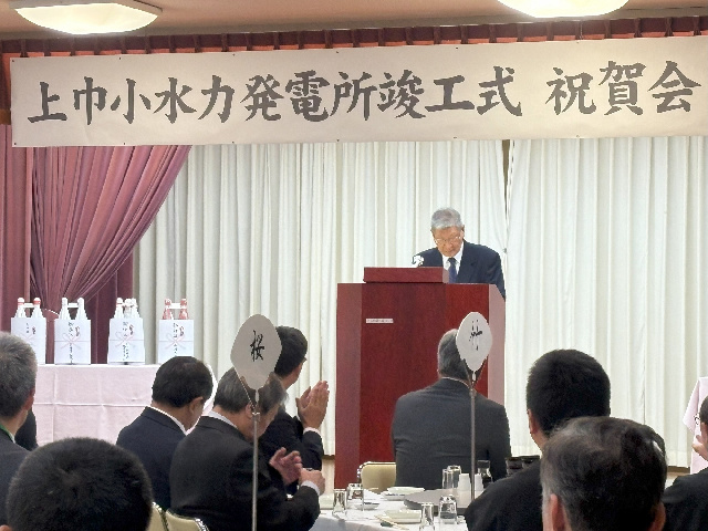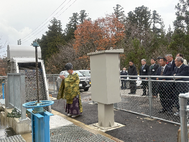 農業用水を利用した上巾小水力発電所が由利本荘市西目町西目に完成し、11月25日(火)に、にしめ湯っ娘ランドで竣工式が行われた。